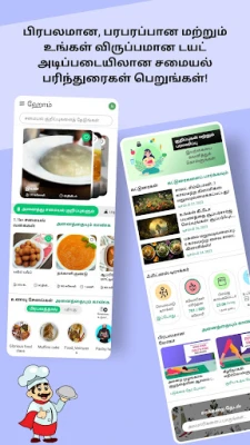 உங்கள் சமையலறையில் என்னென்ன பொருட்கள் உள்ளன என்பதை எங்களுக்குத் தெரியப்படுத்துங்கள்! எங்கள் புரட்சிகரமான "பேன்ட்ரி தேடல்" அம்சம், அந்தப் பொருட்களைப் பயன்படுத்தி நீங்கள் உடனடியாக சமைக்கக்கூடிய அற்புதமான உணவுகளை பரிந்துரைக்கும். ஒவ்வொரு செய்முறையையும் தெளிவான, படிப்படியான காணொளி வழிகாட்டிகளுடன் கற்றுக்கொள்ளுங்கள், இனி சமையல் ஒருபோதும் குழப்பமாக இருக்காது. உலகெங்கிலும் உள்ள உணவு ஆர்வலர்களுடன் இணைந்து கலந்துரையாட குழுக்களில் சேருங்கள். உங்களின் சொந்த சமையல் சேனலை உருவாக்கி, உங்களின் தனித்துவமான குறிப்புகள், நுட்பங்கள் அல்லது சுகாதாரக் கதைகளைப் பகிர்ந்துகொள்ளுங்கள், இதன் மூலம் உங்கள் சமையல் பயணம் மேலும் செழுமையடையும்.