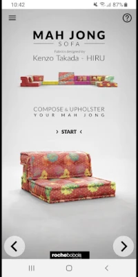ரோச் போபோயிஸ் மஹ் ஜோங் 3D செயலி மூலம், ரோச் போபோயிஸ் பாரிஸின் புகழ்பெற்ற மஹ் ஜோங் சோபாவை உங்கள் வீட்டில் 3D மற்றும் மிகை யதார்த்தத்தில் உருவாக்கி, தனிப்பயனாக்கி, எப்படி இருக்கும் என்பதைக் காணலாம்.