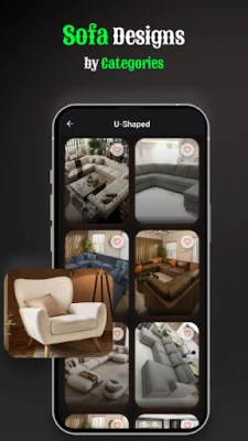 "Sofa Design Ideas" பயன்பாட்டில், எண்ணற்ற வகைகளில் சோஃபா வடிவமைப்புகளை ஆராயலாம். நெருக்கமான இடங்களுக்கான இரட்டை இருக்கை சோஃபாக்கள், குடும்பம் மற்றும் விருந்தினர்களுக்கான நேர்த்தியான வரவேற்பறை அமைப்புகள், அதிக இடத்தைப் பயன்படுத்த உதவும் L-வடிவ சோஃபாக்கள், நவீன தொழில்முறை தோற்றத்திற்கான உலோக சட்டக வடிவமைப்புகள், அலுவலகங்களுக்கு ஏற்ற மினிமலிஸ்ட் பாணிகள், மற்றும் சாய்ந்து ஓய்வெடுக்கும் வசதியுடன் கூடிய சோஃபாக்கள் எனப் பலவும் உள்ளன. இது மட்டுமல்லாமல், புதிய மற்றும் பிரபலமான பாணிகளுடன் தொடர்ந்து புதுப்பிப்புகள் செய்யப்படுவதால், சமீபத்திய வடிவமைப்புப் போக்குகளை எப்போதும் கண்டறியலாம்.